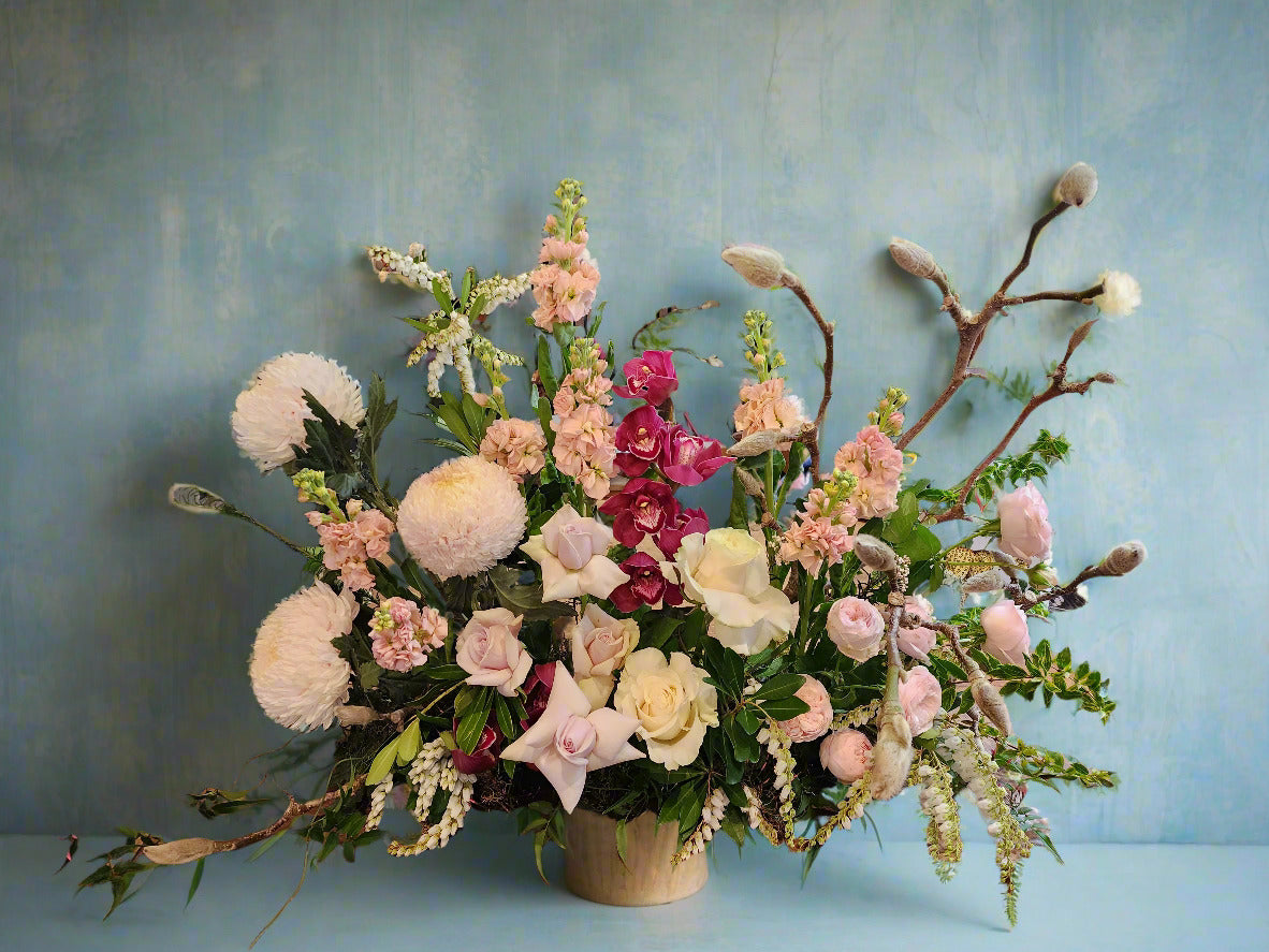 Received gorgeous bouquet from my sisters, thoughtfully made by Flowers Rediscovered in Thorndon. Opulent combination of many beautiful flowers in rich cream, many shades of pink, and deepburgundy. True spring green foliage. I am overwhelmed! Will look to this florist next time I am sending flowers or want something for myself. Great service and true artist.