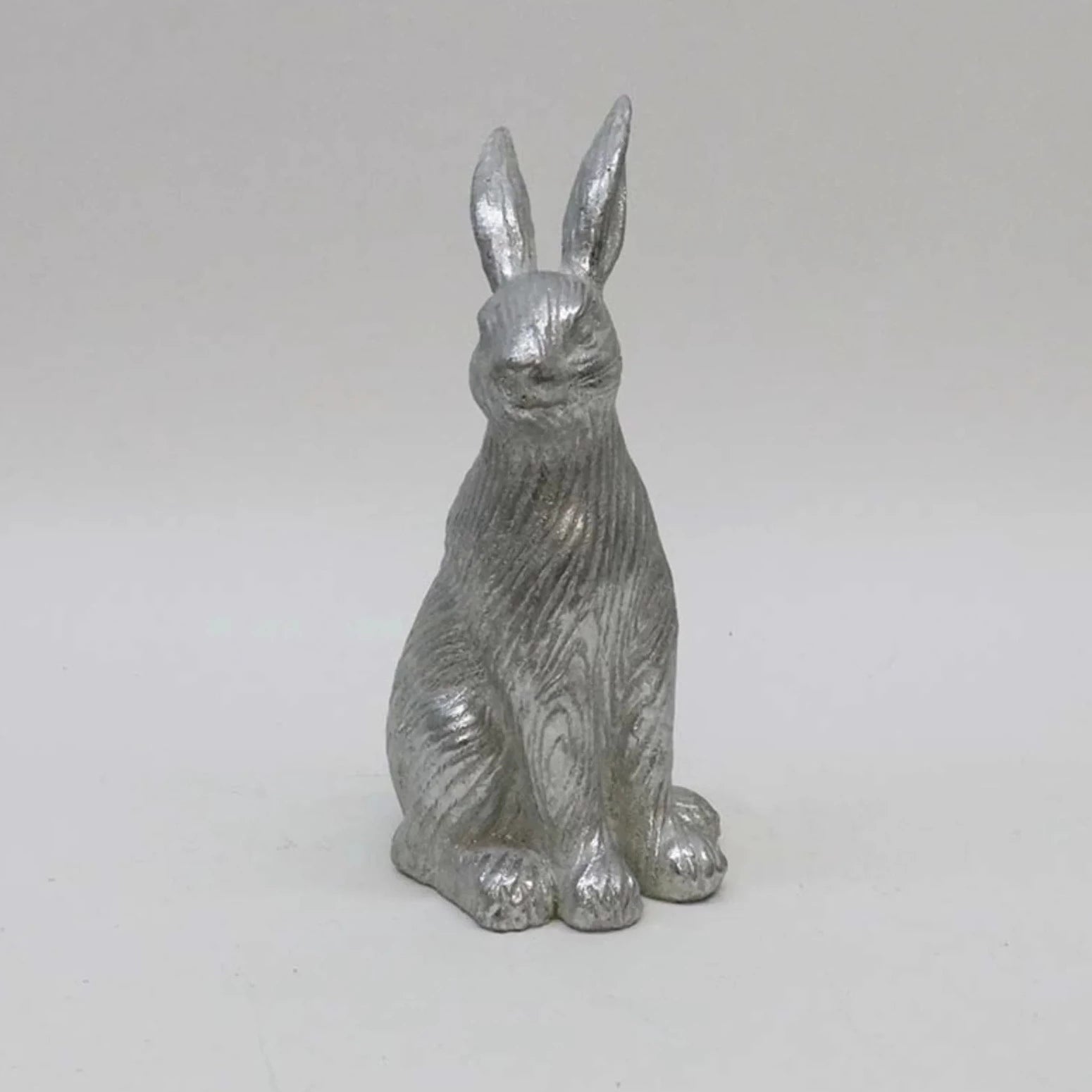 Cute Vienna Bunny available in silver and gold, with wood grain look. 31cms tall